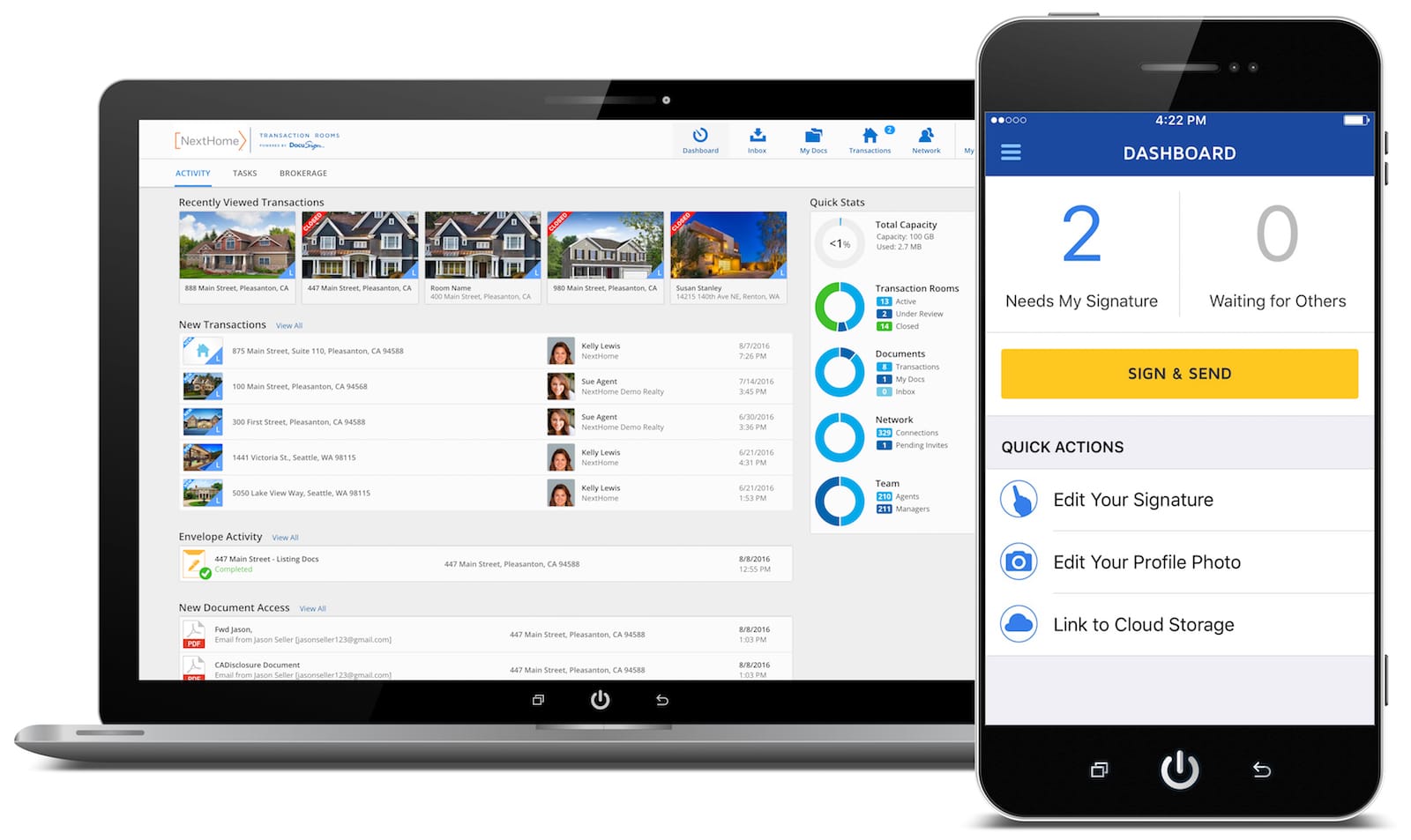 Our integration with DocuSign Transaction Rooms and eSignature helps our agents keep the transaction process simple, secure and convenient for everyone involved. It elevates the experience for home buyers and sellers, showing them first-hand the value of using a NextHome South Pointe real estate professional!